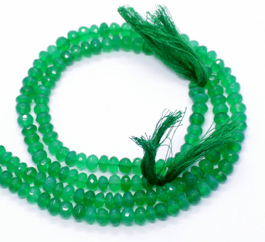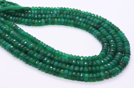 Green Onyx Shaded Faceted Rondelle Beads Natural Shaded Green Onyx Rondelle Beads 3.5-4 MM Green Onyx Gemstone Beads for Jewelry Making