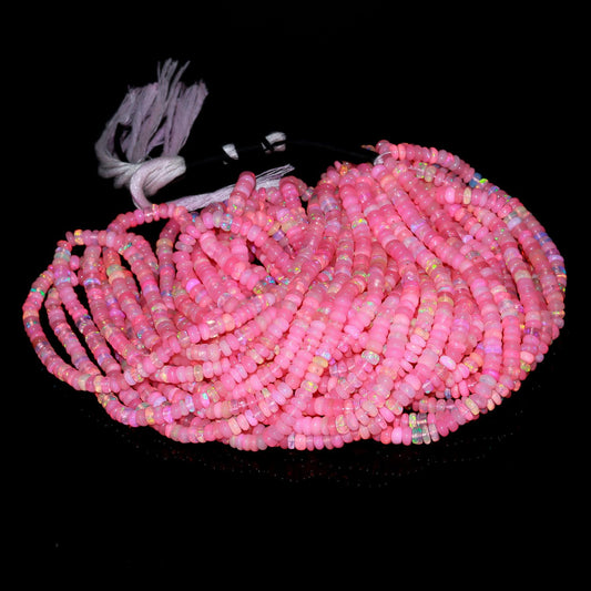 Super Quality Pink Ethiopian Opal Smooth Rondelle Beads, 4.5 MM Natural Flashy Ethiopian Opal Beads, Fire Pink Ethiopian Opal Rondelle Beads