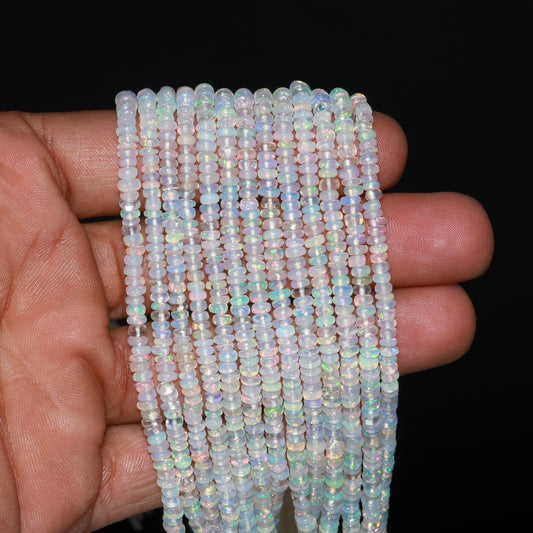 Offer Price~Top Quality~ Ethiopian Opal Smooth Rondelle Beads 3.5-4 MM Natural Multi Flash Ethiopian Opal 16” Multi Fire Ethiopian Opal Bead