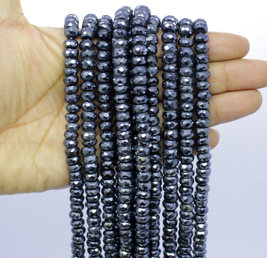 Black Spinal Faceted Rondelle Beads Coated Black Spinal Rondelle Beads Faceted Coated Natural Black Spinal Beads for Jewelry Making Craft