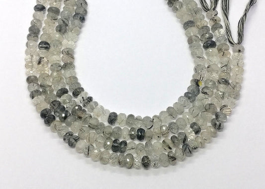 Black Rutile Faceted Rondelle Beads 7.5-8 MM Rutile Rondelle Beads Black Rutile Rondelle Beads for Jewelry Making Craft Gemstone Beads