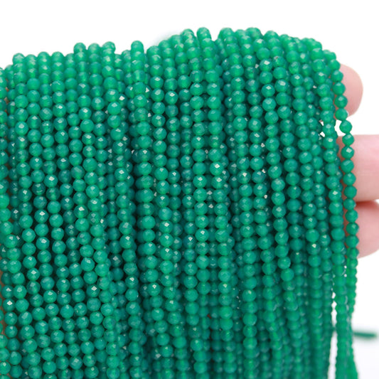 5 Strands Green Onyx Faceted Round Beads 3.5 MM Green Onyx Round Beads Faceted 13" Strand Natural Green Onyx for Designer Jewelry Making