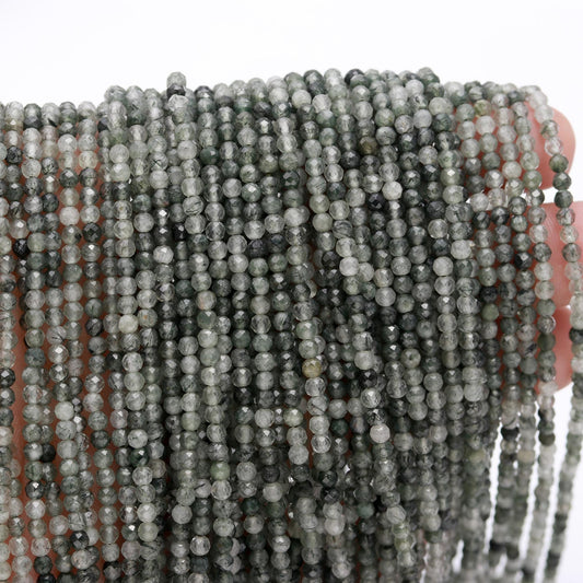 5 Strands Green Rutile Faceted Rondelle Beads 3 MM Rutile Rondelle Beads 13" Strand Natural Green Rutile Round Bead for Jewelry Making Craft