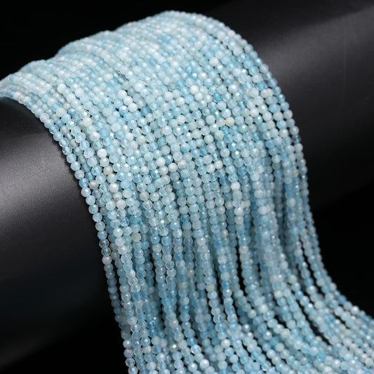 5 Strands Aquamarine Faceted Rondelle Beads 3MM Natural Aquamarine Rondelle Beads Faceted Aquamarine Beads for Jewelry Natural Stone Beads