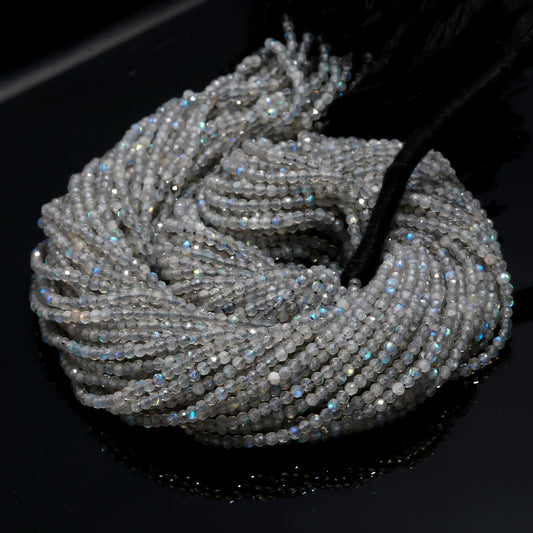 5 Strands Flashy Labradorite Faceted Rondelle Bead 2.5 MM Natural Labradorite Rondelle Beads 13" Strand Black Moonstone for Jewelry Making