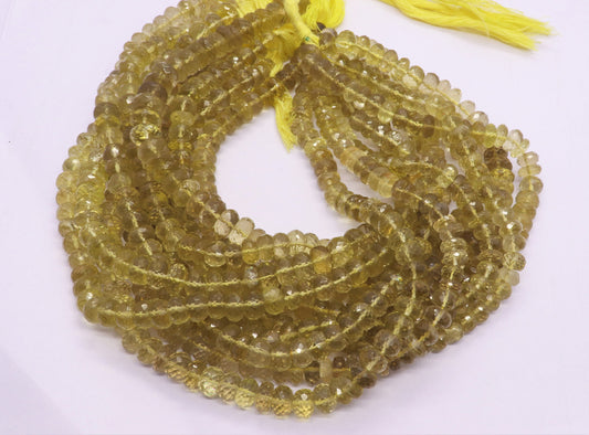 AAA Natural Lemon Quartz Faceted Rondelle Beads, 6MM Rondelle Lemon Quartz Beads, 13" Yellow Quartz Rondelle Faceted Beads for Jewelry