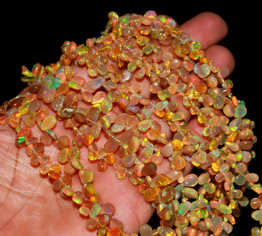 AAA Natural Rainbow Flash Ethiopian Opal Pear shape Briolette's Beads, High Flashy Opal Smooth Pear Beads, 16" Fire Opal Briolettes Strand