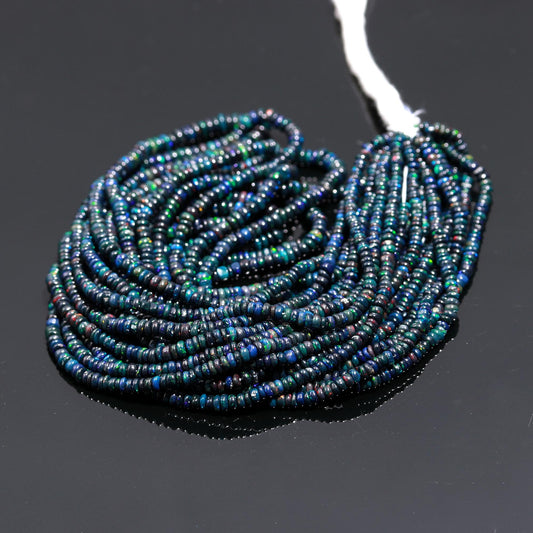 Excellent Black Ethiopian Opal Smooth Rondelle Beads 3-5 MM Natural Flashy Ethiopian Opal Multi Fire Ethiopian Opal for Designer Jewelry