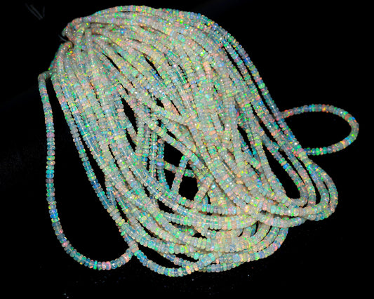SUPER Quality DISCO Ethiopian Opal Smooth Rondelle Beads 3-4 MM Natural Multi Flash Ethiopian Opal Beads Multi Fire Beads for Jewelry Making