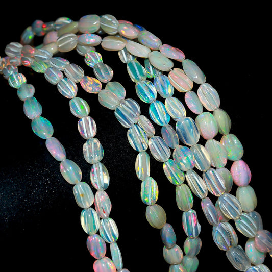 Multi Fire Ethiopian Opal Faceted Oval Shape Beads Natural Flashy Ethiopian Opal Oval Beads AAA 16" Ethiopian Opal for Jewelry Making Craft