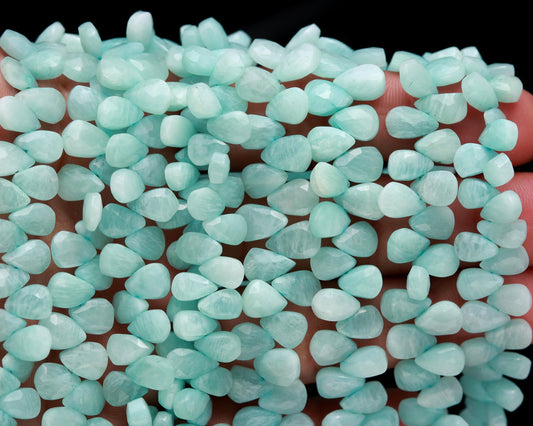 AAA Amazonite Faceted Pear Shape Beads, Natural Amazonite Briolettes Beads, 5x7- 6x9 MM Pear Shape Amazonite Beads for Jewelry Making