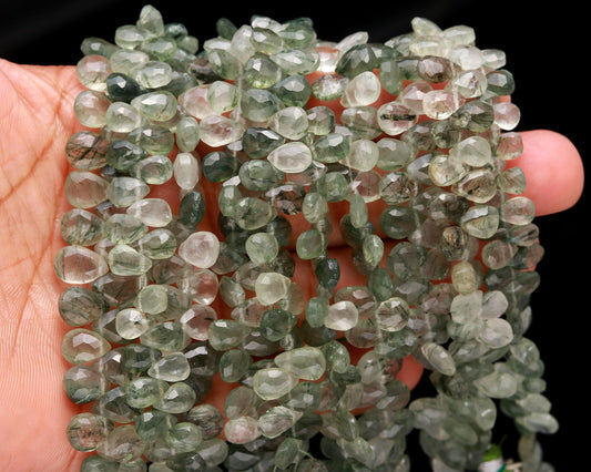 AAA Natural Green Rutile Faceted Pear Shape Beads | Green Rutile Pear Shape Beads Briolettes | Rutile Gemstone Beads