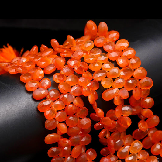 Carnelian Faceted Pear Shape Beads Natural Carnelian/Caroline Pear 7x9 - 8x10 MM Briolettes Beads for Jewelry Necklace Pendant Making Craft
