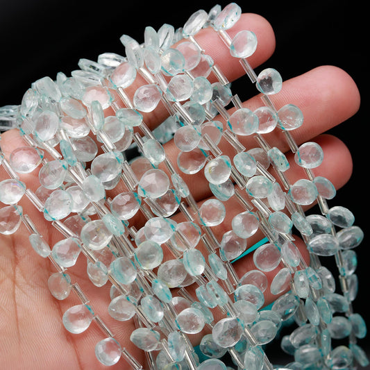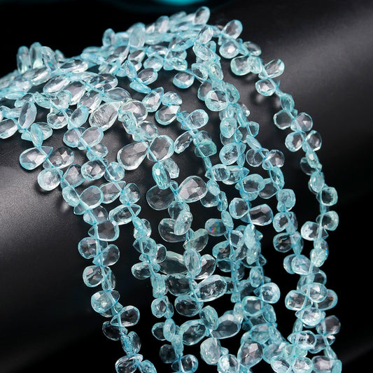 Aquamarine Faceted Briolette Natural Aquamarine Faceted Pear Shape 7x9 MM Beads for Exclusive Handmade Designer Jewelry Making Art and Craft