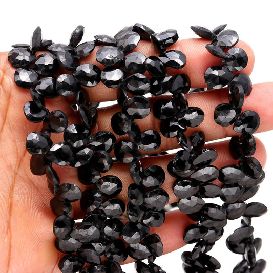 Black Spinal Faceted Pear Shape Beads Natural Black Spinal 7x9 - 8x10 MM Briolettes Beads for Jewelry Necklace Pendant Bracelet Making Craft