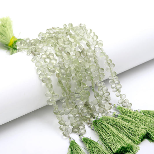 AAA Natural Green Ametheyst Faceted Pear Shape Beads 5x7-6x8 MM Green Amethyst Briolettes Beads | Green Amethyst Gemstone Beads for Jewelry