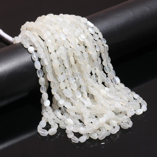 White Moonstone Oval Shape Smooth Bead Natural Moonstone 6x8 - 7-9 MM Oval Bead for Handmade Jewelry Necklace Pendant Earrings Making Craft