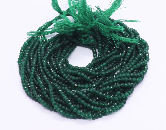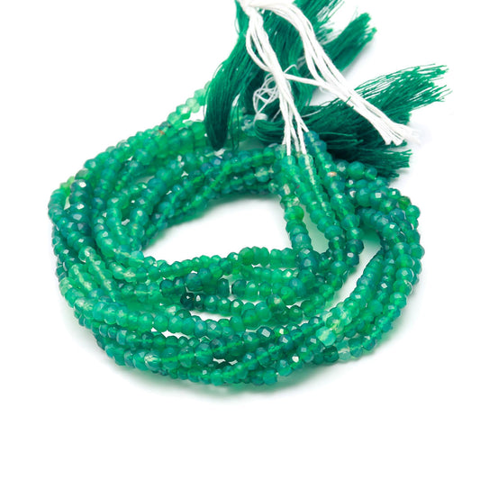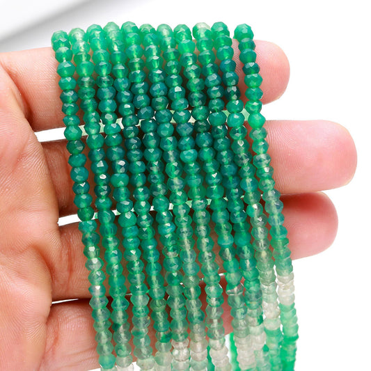 Green Onyx Shaded Faceted Rondelle Beads Natural Shaded Green Onyx Rondelle Beads 3.5-4 MM Green Onyx Gemstone Beads for Jewelry Making