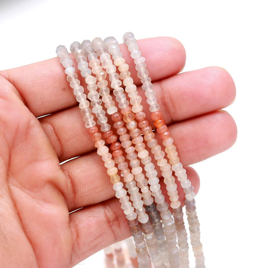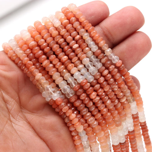 Multi Moonstone Rondelle Beads Peach and White Moonstone Faceted Rondelle Beads 4-4.5 MM Moonstone Gemstone Beads for Jewelry Making Craft