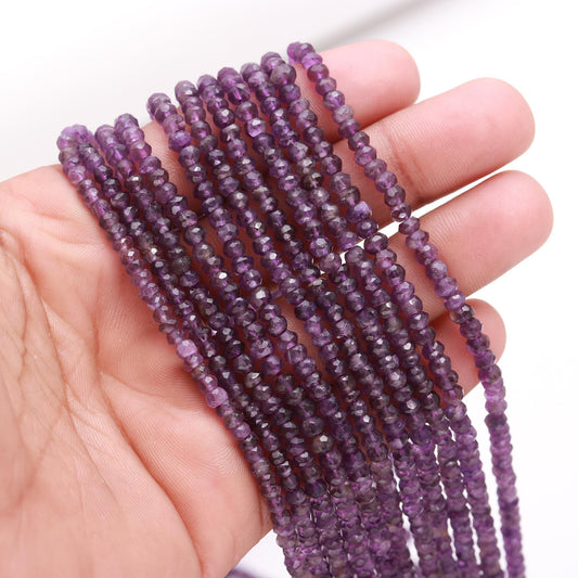 Natural Amethyst Faceted Rondelle Beads 3.5-4.5 MM Amethyst Rondelle Faceted Beads for Handmade Designer Jewelry Making & Bijoux Supplies