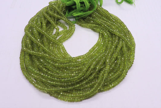 AAA+ Natural Peridot Faceted Rondelle Beads, 4.5-5.5 MM Natural Peridot Rondelle Beads, 13 Inch Parrot Green Peridot Rondelle Beads