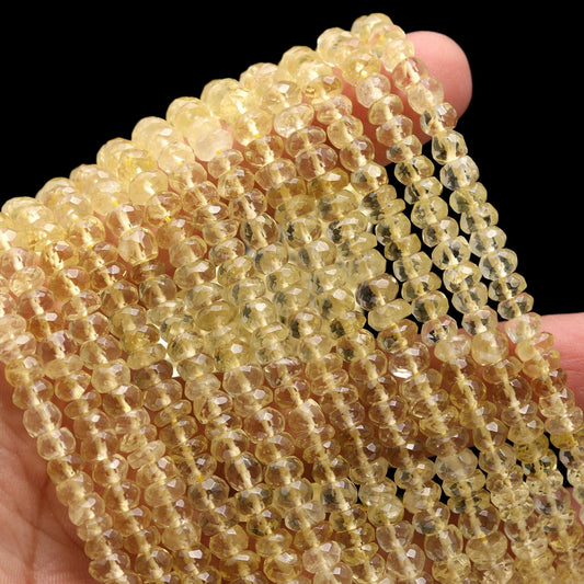 AAA Natural Lemon Quartz Faceted Rondelle Beads 4-5MM/5-6MM Lemon Quartz Rondelle Faceted Beads | 13” Yellow Gemstone Beads Rondelle