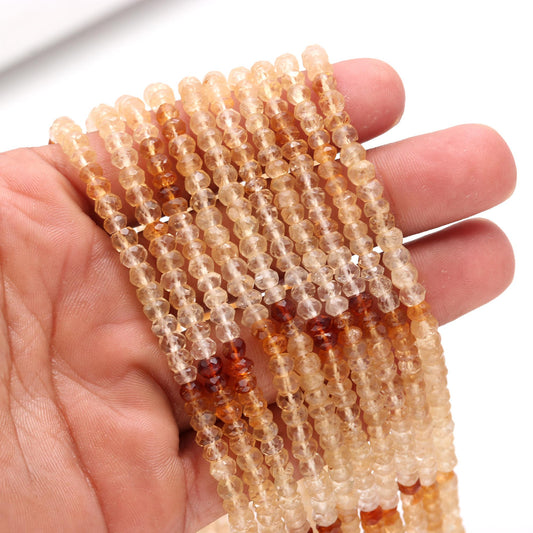 Citrine Shaded Faceted Rondelle Beads Brandy Citrine Rondelle Beads 4-4.5 MM Citrine Rondelle Beads Natural Citrine Beads for Jewelry Making