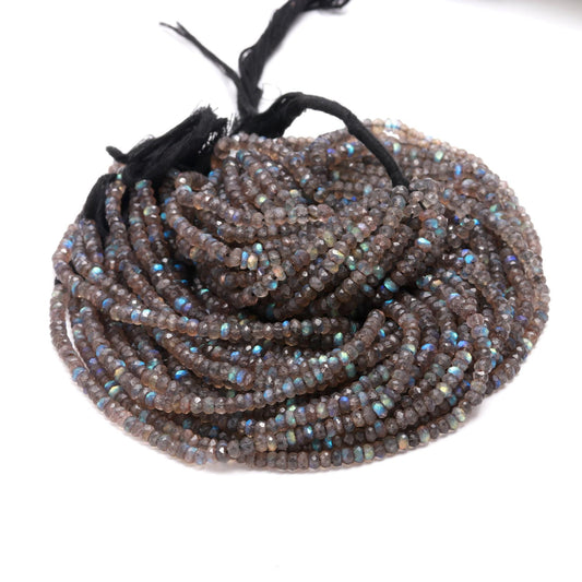AAA Natural Labradorite Faceted Rondelle Beads, 4-4.5 MM Labradorite Rondelle Beads, Black Moonstone Rondelle Beads for Handmade Jewelry