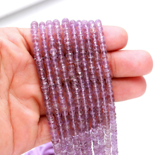 AAA Natural Pink Amethyst Faceted Rondelle Beads, 4-4.5/4.5-5 MM Pink Amethyst Rondelle Beads, Purple Amethyst Rondelle Beads Strand