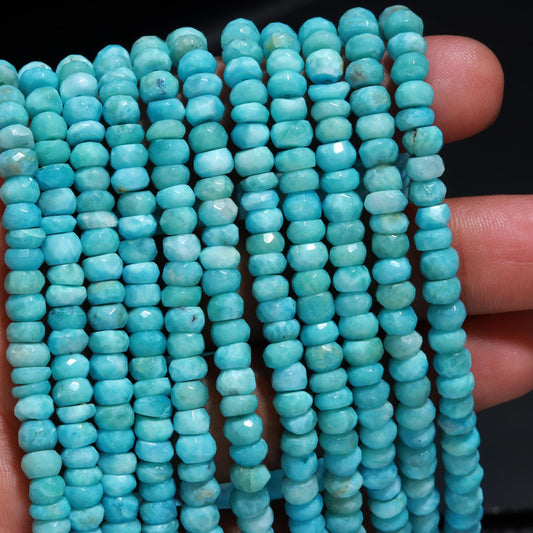 Natural Larimar Faceted Rondelle Beads, 5-6 mm Blue Larimar Faceted Beads, Domnican Larimar Rondelle Beads for Jewelry Making
