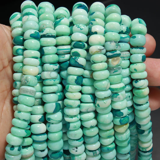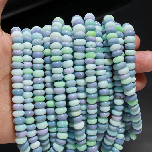 Multi Color Opal Smooth Rondelle Beads Blue Sky Blue Green Mix Opal 8-9 MM Rondelle Gemstone Bead for Jewelry Necklace Bracelet Making Craft
