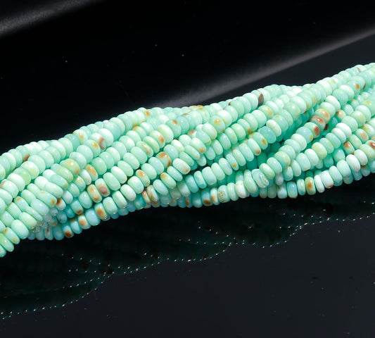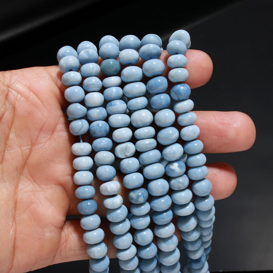 Peruvian Blue Opal Rondelle Beads, 5-6 MM and 6-7 MM Peru Blue Opal Smooth Rondelle Gemstones Beads for Handmade Jewelry Making & Reselling