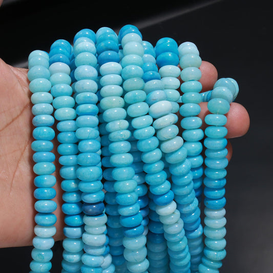 3 Strands Peru Blue Opal Rondelle Beads 6 MM Opal Smooth Rondelle Gemstone Beads for Handmade Designer Jewelry Making Craft & Reselling