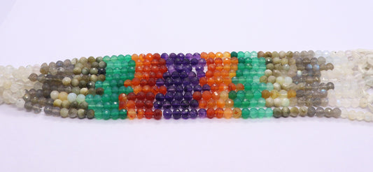 Multi Semi Precious Faceted Round Beads 5-5.5 MM Natural Rainbow, Labradorite, Cat's Eye, Green Onyx, Carnelian, Amethyst Beads for Jewlery