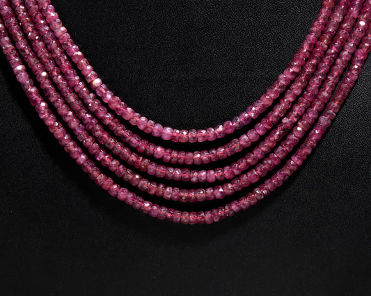 5 Strands Beautiful Ruby Faceted Rondelle Beads Necklace, 3.5-4.5 MM Ruby Rondelle Bead, 16-18 Inch Red Ruby Rondelle Beads Necklace Jewelry
