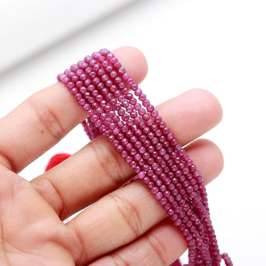 2.5 MM Ruby Faceted Rondelle Beads Natural Ruby Beads 12.5" Ruby Rondelle Micro Beads for Handmade Designer Jewelry Making Craft Supplies