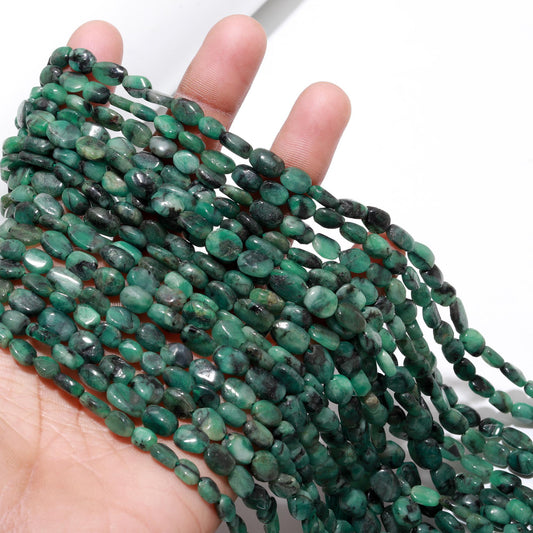 Emerald Smooth Oval Beads Necklace 7x9-8x10 MM Natural Emerald Sakota Beads 12.5 Inch Strand Brazilian Emerald Beads for Handmade Jewelry
