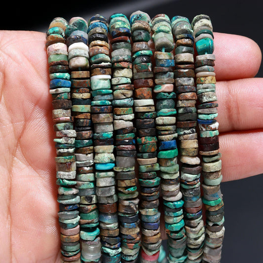Crysocolla Heishi Washer Beads AAA 16 Inch Tibetan Chrysocolla 6-7 MM Smooth Heishi Tyre Shape Natural Chrysocolla for Jewelry Making Craft