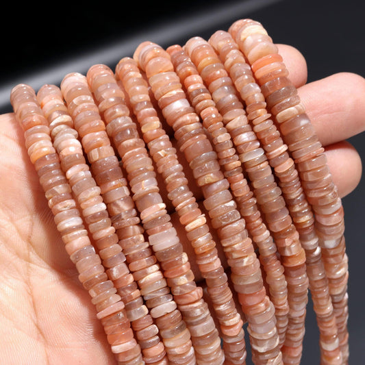 Peach Moonstone Heishi Washer Beads Natural Peach Moonstone Washer Beads AAA Quality 16 Inch Peach Moonstone Washer Beads Wholesale Price