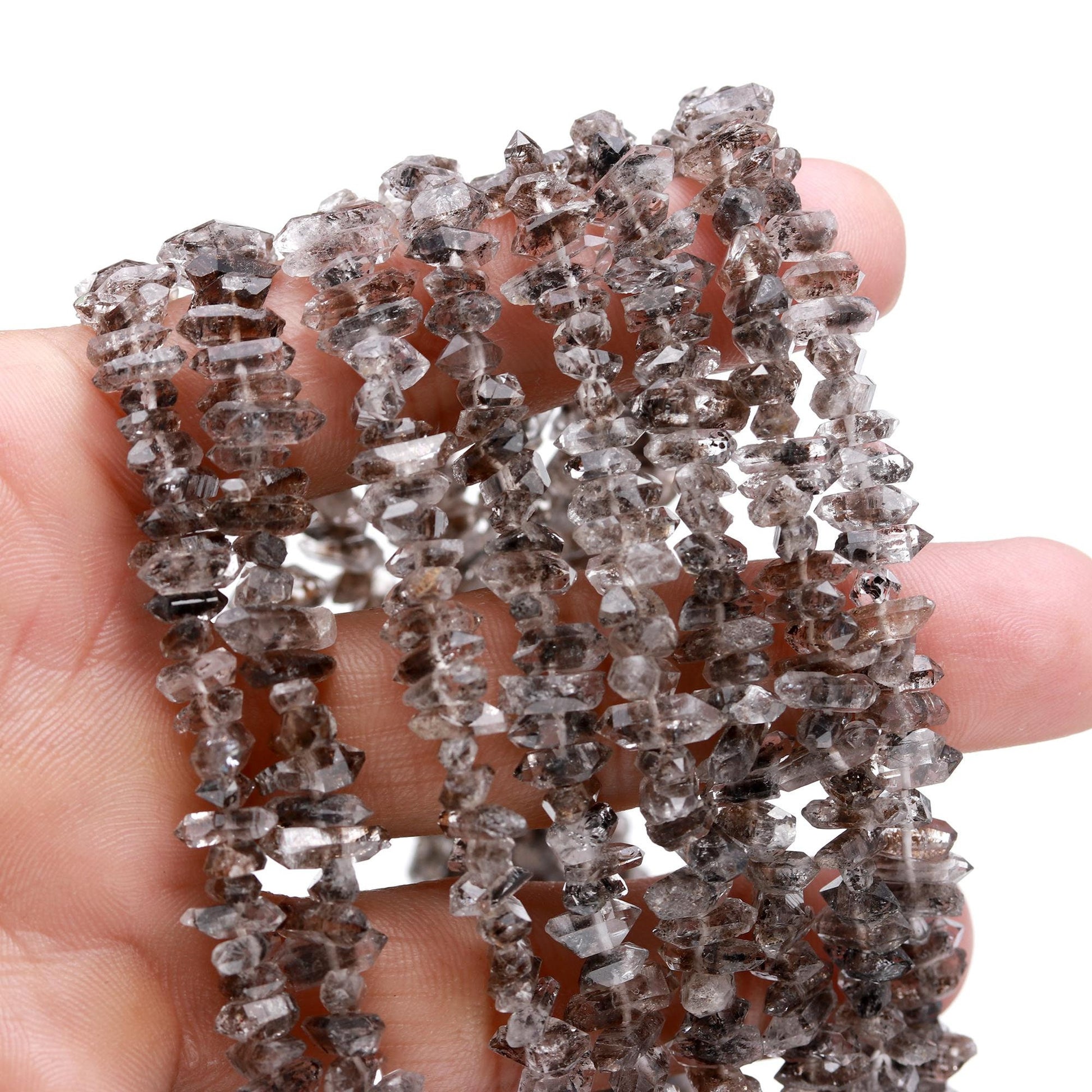16” Black Herkimer Diamond Quartz Nuggets Beads, 4x8-5x10 MM Natural Uncut Herkimer Raw Nuggets Beads, Grey Herkimer Dimond nuggets beads
