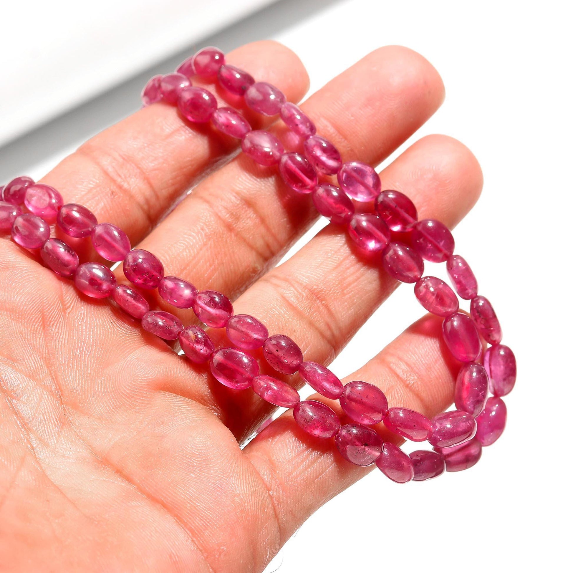 2 Strands Ruby Smooth Oval Beads Necklace 4x6-7x9 MM Ruby Oval Smooth Beads RARE Precious Ruby Beads Jewelry Necklace with adjustable clasp