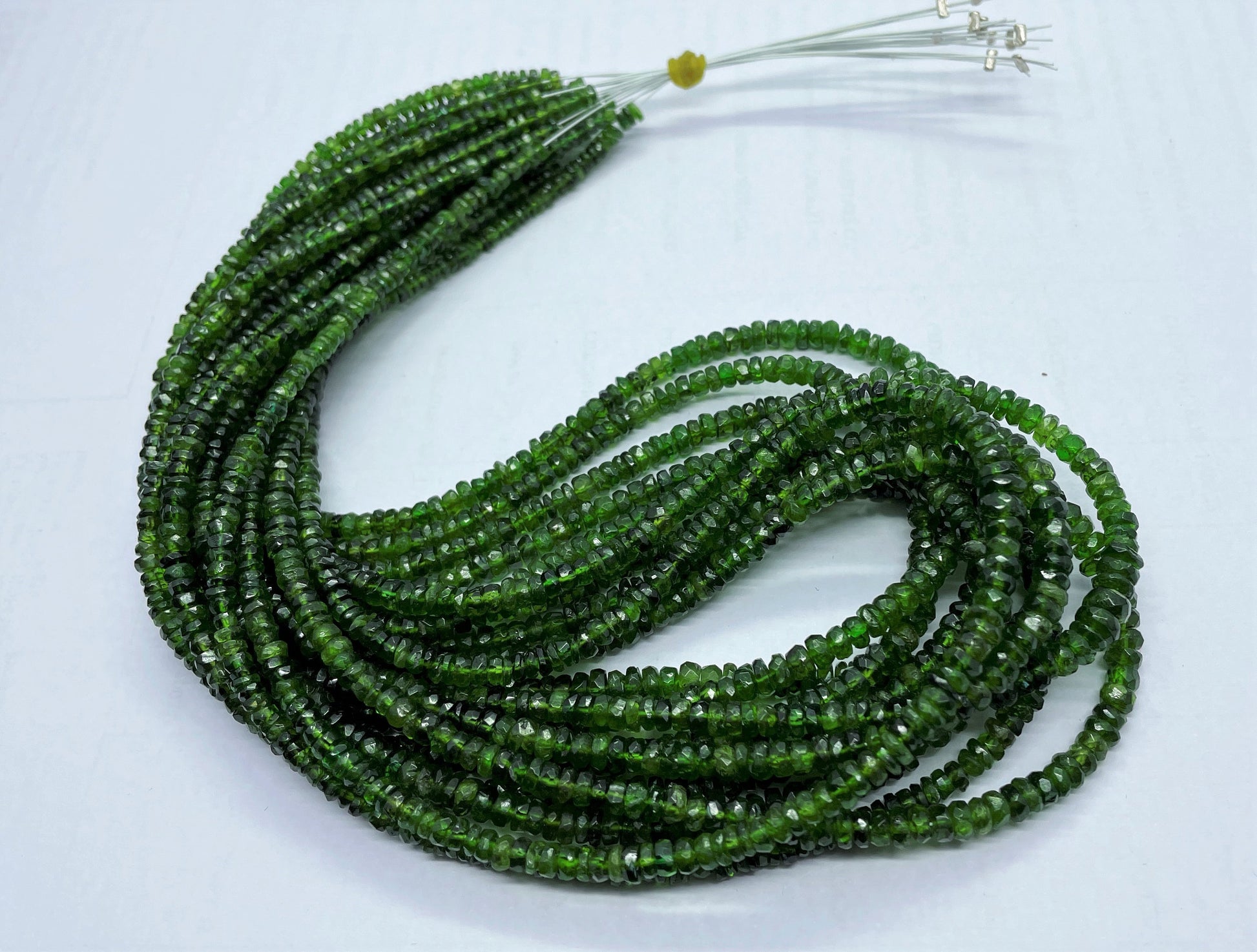 AAA+ Natural Chrome Diopside Faceted Rondelle Beads, 3-4.5 MM Natural Green Chrome Diopside Rondelle Beads, 18 Inch Chrome Diopside Necklace