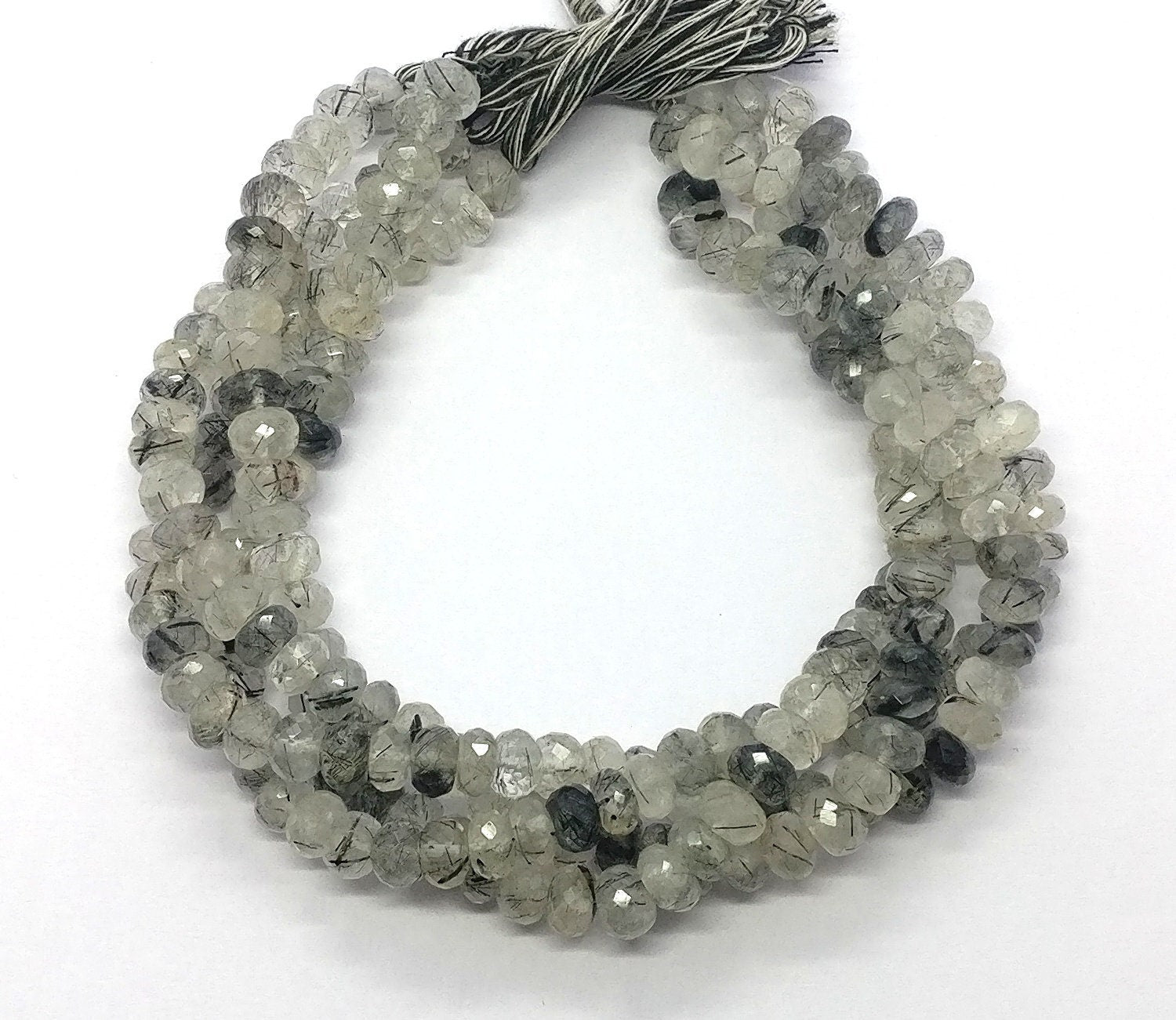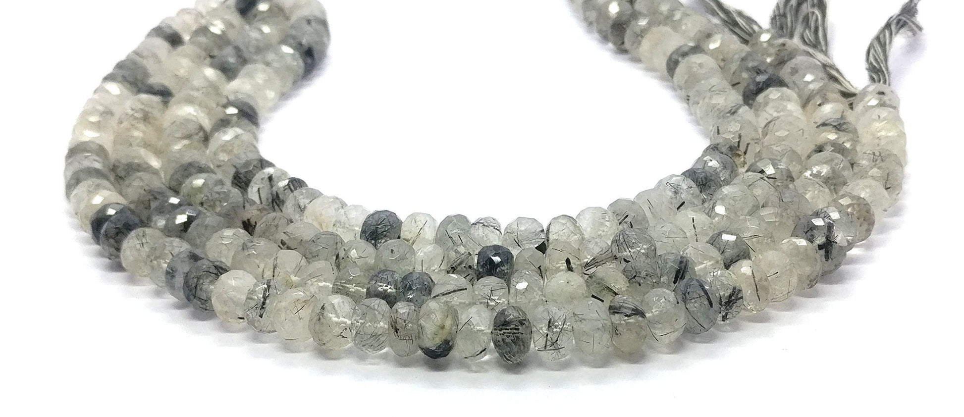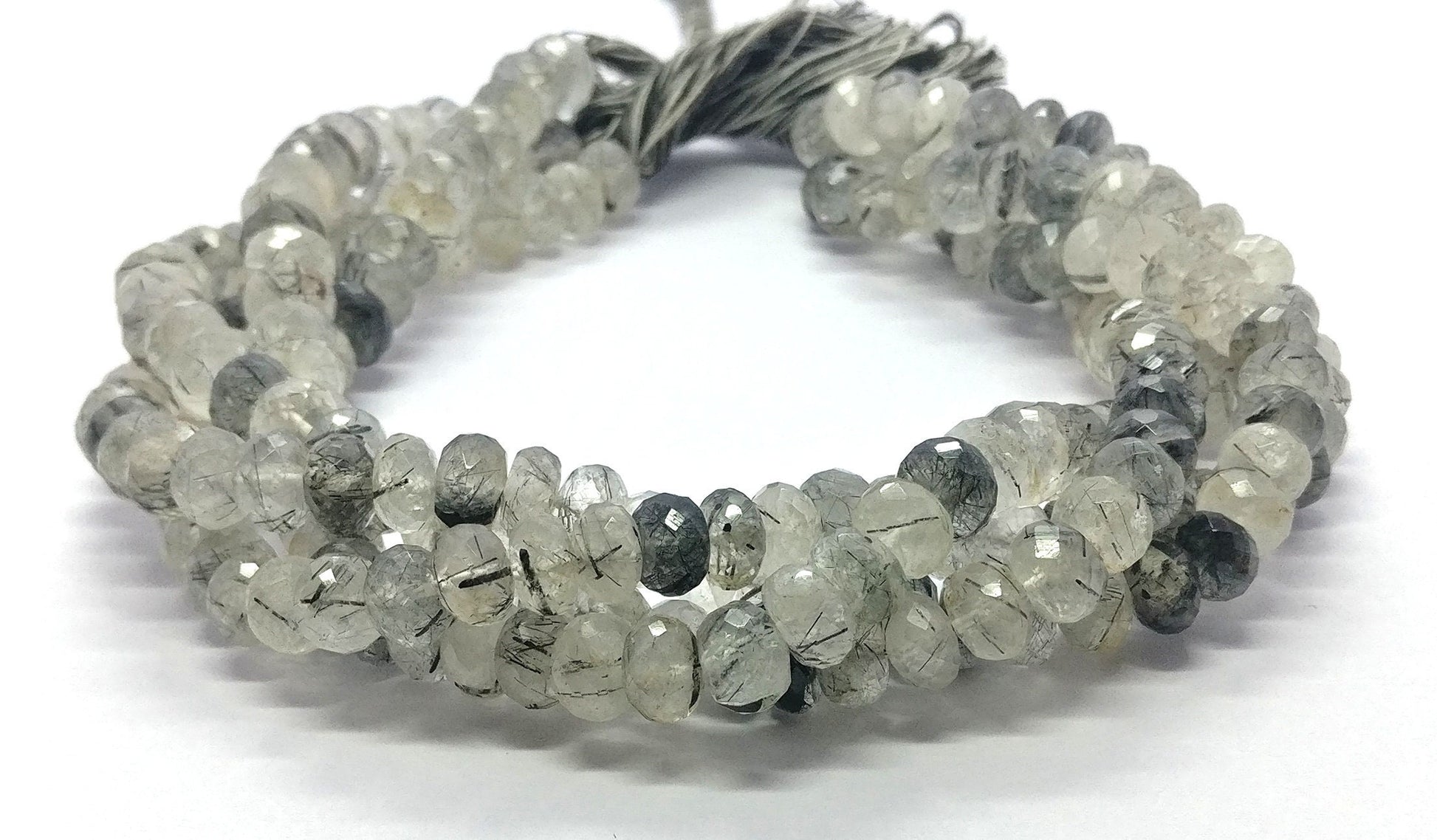 Black Rutile Faceted Rondelle Beads 7.5-8 MM Rutile Rondelle Beads Black Rutile Rondelle Beads for Jewelry Making Craft Gemstone Beads