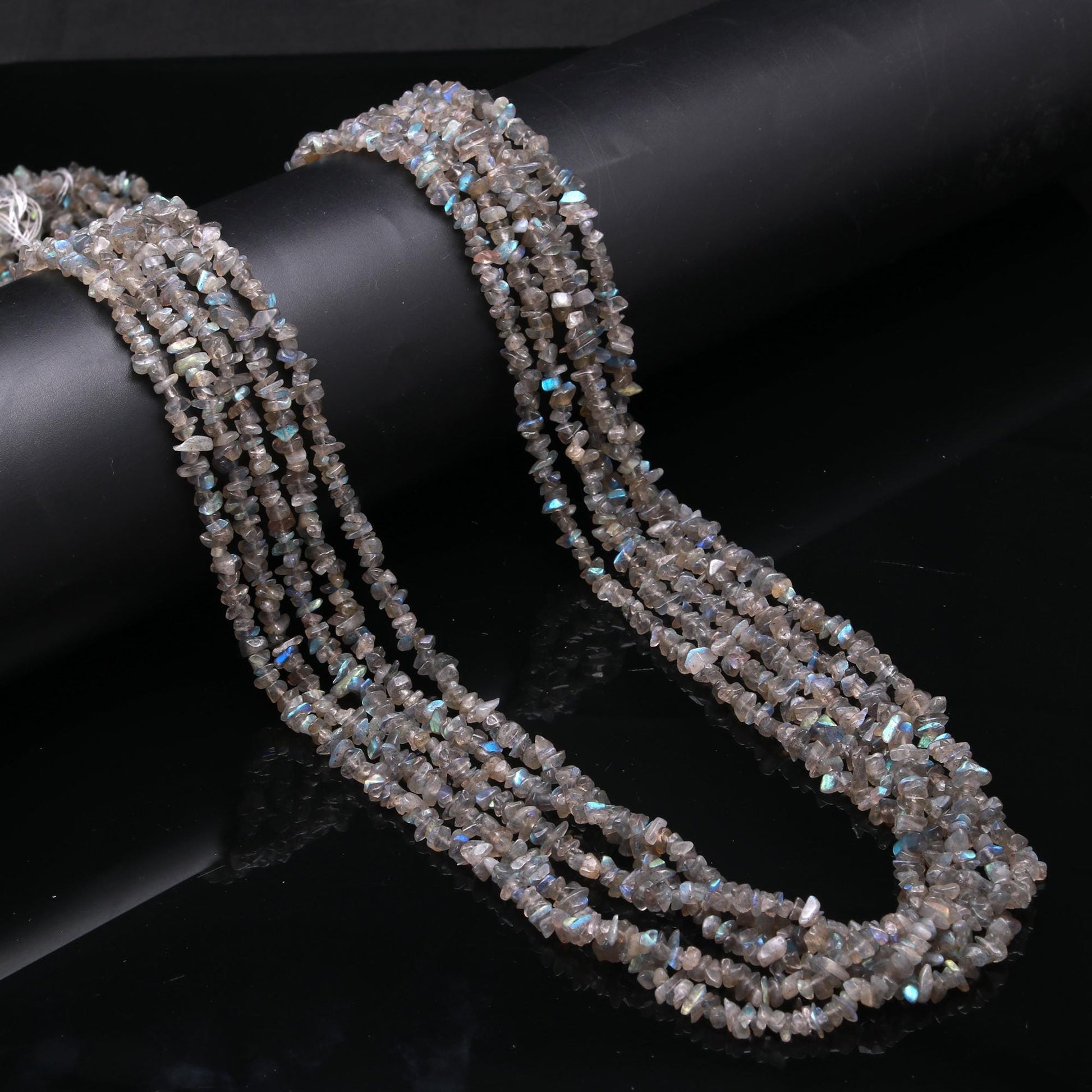 Labradorite Chip Beads 34" Natural Chip Strands Drilled Strung Raw Smooth Nuggets 4-5 MM Black Moonstone Polished Beads for Jewelry Making